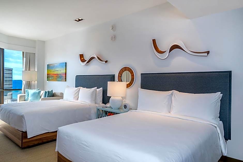 After a long day of exploring the beautiful city of Honolulu, the offers comfortable and spacious rooms to rest and recharge. Whether you're traveling with a group of friends or your family, this hotel has a variety of room options to suit your needs. Choose from suites with stunning ocean or mountain views, or rooms with a view of the city. With options such as the King Suite with Ocean View, Queen Suite with Two Queen Beds and City View, and the Deluxe Queen Room with Two Queen Beds, you'll find the perfect space for a relaxing stay.